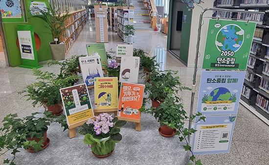 6월 주제는 ‘지구를 살리는 탄소중립’으로 시민들에게 탄소중립에 대한 이해를 높이고 자발적인 저탄소 생활실천으로 나아갈 수 있도록 어린이부터 성인까지 읽을 수 있는 도서를 전시하고 있다.