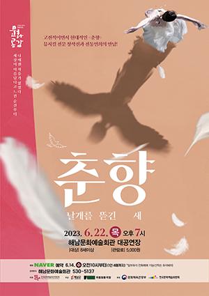 해남군은 국립정동극장의‘춘향 : 날개를 뜯긴 새’공연을 해남문화예술회관 대공연장에서 오는 22일 개최한다.