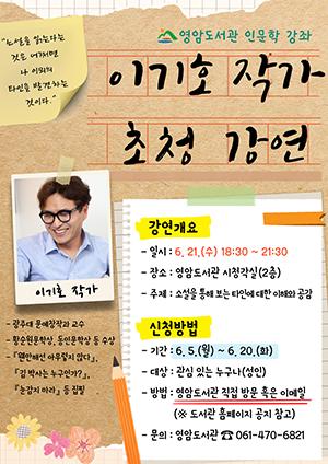 영암군이 오는 21일 이기호 소설가를 초청해 영암도서관에서 여는 ‘제2회 정기 인문학 강좌’ 참여자를 모집한다.