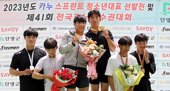 전남체고 박철웅과 홍정현은 남자 고등부 k-2 500m에 출전해 1분 42초 5의 기록으로 결승선을 가장 먼저 통과해 첫번째 금메달을 차지했다. 이어 k-2 200m에서도 36초 582로 금메달, 이진솔·이호준이 38초688로 은메달을 획득했다.
