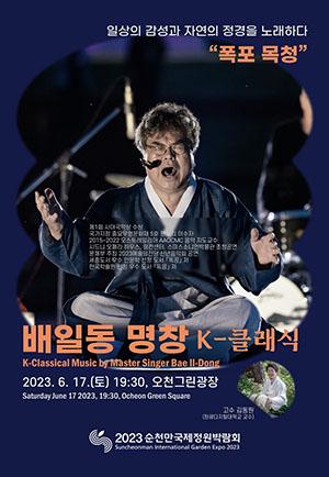 (재)순천만국제정원박람회조직위원회는 오는 17일 19시 30분 오천그린광장에서 배일동 명창의 ‘K-클래식’공연을 개최한다고 밝혔다.