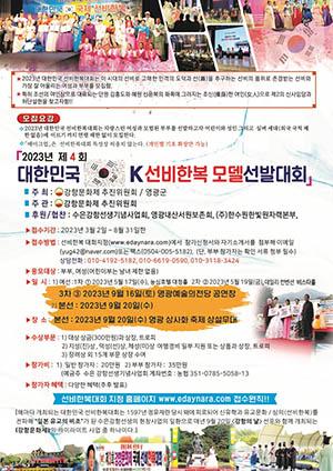 3차 예선은 9월 16일 영광 문화예술의 전당에서 개최되며, 참가신청은 8월 31일까지 선비한복대회 홈페이지(www.edaynara.com)를 통해 접수 가능하다.