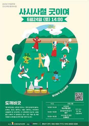 한편, 6월 ‘사시사철 굿이여’의 세부 프로그램으로 ‘사시사철 굿 공연(도깨비굿)’, ‘광산농악 데다보기(장구)’, ‘농악 그것이 알고 싶다(스탬프 투어)’를 운영하며 일반 시민 누구나 참여할 수 있다.