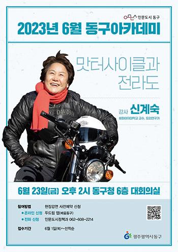 광주 동구는 오는 23일 오후 2시 구청 6층 대회의실에서 열리는 ‘제263회 동구아카데미’ 강사로 특유의 정감 있는 입담과 남다른 친화력을 자랑하는 요리전문가 신계숙 교수를 초청해 강의와 광주 문화를 탐방하는 특별한 시간을 갖는다고 밝혔다.