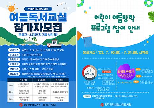 광주시립도서관(무등·사직·산수)은 여름방학을 맞은 초등학생을 대상으로 세 가지 주제의 여름독서교실을 운영한다고 3일 밝혔다.