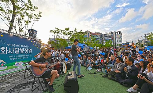 광주시 서구 화정4동 주민자치회는 지난 8일 오후 염주어린이공원에서 주민 300여 명이 참여한 가운데 ‘한여름밤의 화사달빛정원’ 축제형 골목총회를 개최했다.