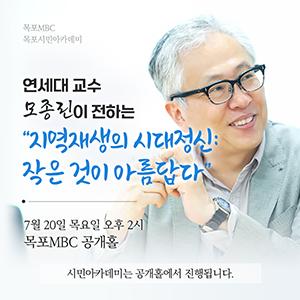 목포시와 목포MBC가 공동 주최하고 있는 목포시민 아카데미 강좌가 오는 20일 목요일 오후 2시, 목포MBC 공개홀에서 개최된다.