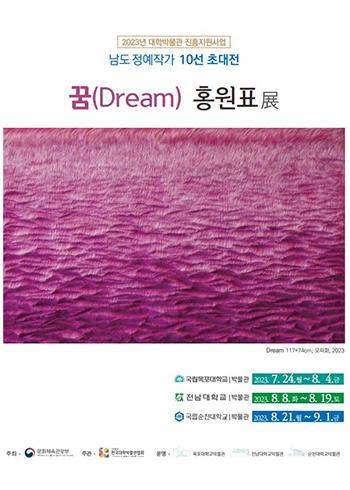 국립목포대학교 박물관은 전남대학교박물관-국립순천대학교박물관과 함께 운영하는 \'남도 정예작가 10선 초대전\' 홍원표 작가의 \'꿈(Dream)\' 순회전시가 7월 24일부터 9월 1일까지 운영된다고 밝혔다.