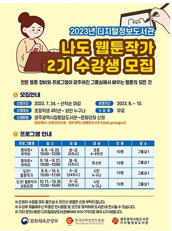 광주시립디지털정보도서관은 ‘나도 웹툰작가’ 2기 수강생을 24일부터 선착순 모집한다.