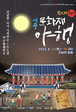 문화재청 공모사업으로 추진되는 \'여수 문화재 야행\'은 단순한 문화재 관람 형태에서 벗어나 오후 6시부터 11시까지 야간시간에 여수의 특색 있는 문화재를 활용, 8야(8夜)로 구분된 프로그램을 선보인다.