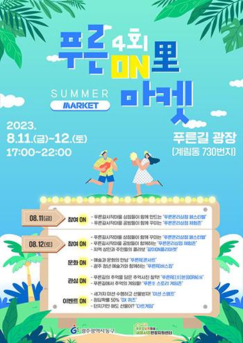 광주 동구(는 오는 11~12일 오후 5시부터 10시까지 계림동 푸른길 광장에서 제4회 ‘푸른온리(ON里)마켓’을 개최한다고 밝혔다.
