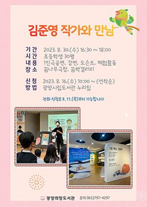 광양희망도서관은 오는 30일 오후 4시 30분에 「김준영 작가와 만남」을 운영한다고 밝혔다.
