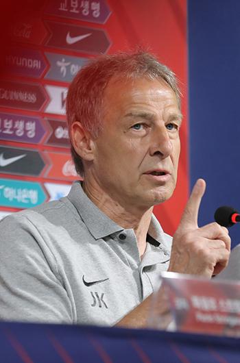 위르겐 클린스만 한국 축구대표팀 감독이 22일 오후 서울 종로구 대한축구협회 축구회관에서 열린 기자회견에서 질문에 답하고 있다. 2023.06.22.