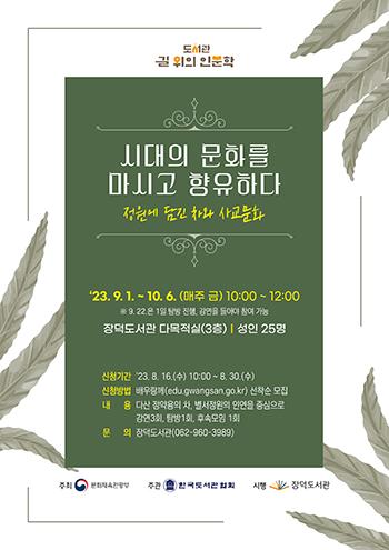 광주 광산구 장덕도서관이 ‘길 위의 인문학’으로 여는 ‘정원에 담긴 차와 사교 문화’ 인문학 강연 참여자를 모집한다.