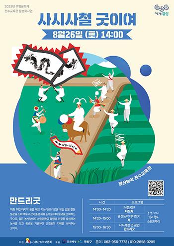 광산농악 전수교육관 활성화 사업으로 추진하는 ‘사시사철 굿이여’는 공연과 체험, 교육을 통해 유네스코 세계무형유산인 농악을 다방면으로 알아보는 프로그램이다.