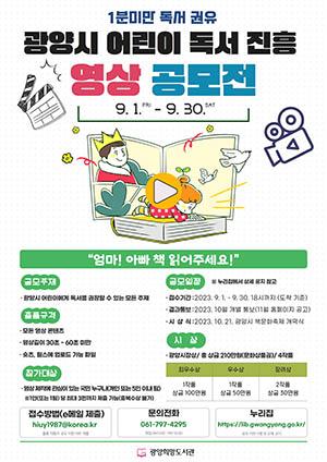 광양시 희망도서관이 전 국민을 대상으로 ‘어린이 독서 진흥 영상 공모전’을 9월 한 달간 진행한다고 24일 밝혔다.
