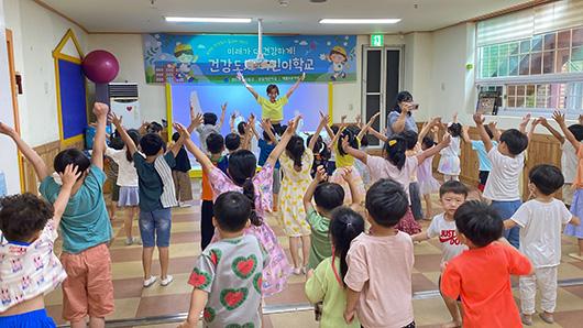 ‘건강 도시 어린이학교’는 관내 어린이집과 유치원 등 2개소 원생을 대상으로 지난 28일부터 한 달간 매주 1회 총 4차시로 진행된다. 아동의 눈높이에 맞춘 복화술·인형극 등 다양한 체험활동에 참여할 수 있도록 했다.