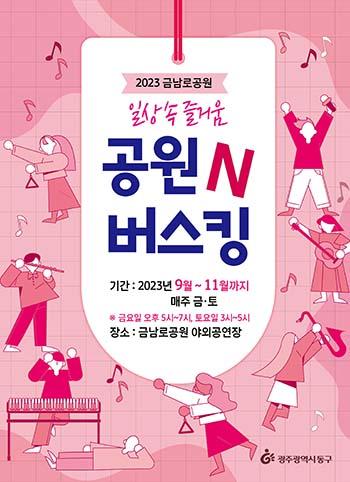 ‘공원N버스킹’은 일상 속 작은 여유 공간인 금남로공원에서 매주 주말마다(금 오후 5~7시·토 오후 3~5시) 눈과 귀를 사로잡는 다채로운 공연으로 버스킹의 매력을 시민들에게 선사할 예정이다.
