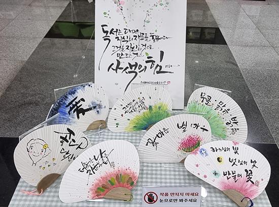 이번 작품들은 6~8월 진행된 ‘인문학의 시작, 캘리그래피 중급반 특강’ 참여자들이 만든 총 48점으로 가방 11점, 부채 22점, 엽서 15점이다.