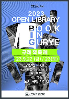 군은‘Open Library B.I.G. (book in gurye)’라는 주제로 성인부터 아이까지 마음을 열고 축제를 즐길 수 있도록 ▲인문학콘서트 ▲인형극 ▲북토크 ▲음악 공연 ▲작품전시 ▲ 독서 체험 부스 등 다채로운 프로그램을 마련했다.