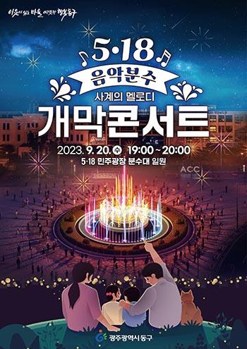 광주 동구는 오는 20일 오후 7시부터 5·18민주광장 분수대가 음악분수로 새 단장을 마친 것을 기념해 주민들과 함께 즐기는 ‘5·18 음악분수 개막콘서트’를 개최한다고 밝혔다.