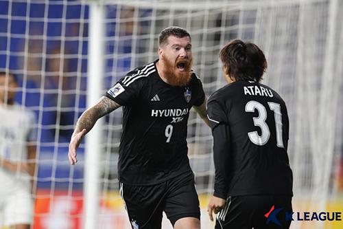 울산 공격수 마틴 아담이 19일 빠둠과의 2023~2024 ACL 1차전 홈 경기에서 골을 넣고 기뻐하고 있다. /한국프로축구연맹 제공