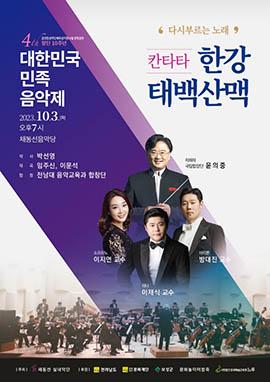 이번 공연에는 윤의중 국립합창단 예술감독이 지휘봉을 잡고, 채동선의 ‘개천절’,‘한강’을 바리톤 방대진(전남대 교수), 테너 이재식(군산대 교수), 소프라노 이지연 등이 출연해 특별한 무대로 선보일 예정이다.