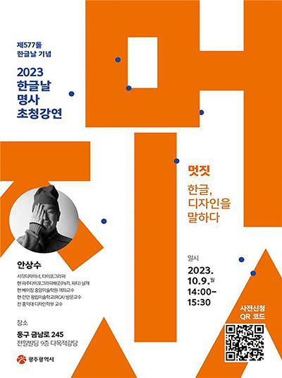 광주시는 이번 강연이 한글의 디자인적 확장성과 창의성을 살펴보는 담론의 장이 될 것으로 기대하고 있다.