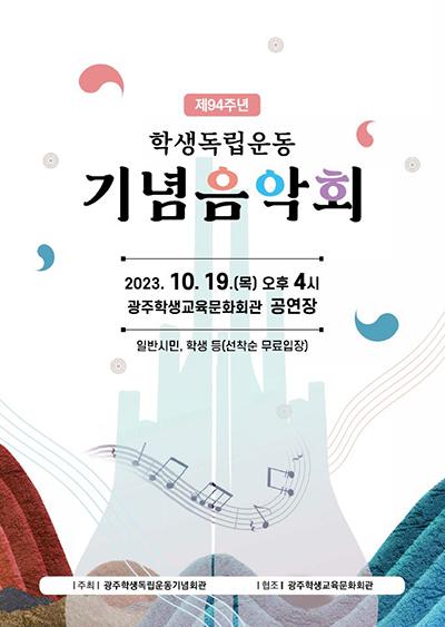 광주학생독립운동기념회관이 오는 19일 오후 4시 광주학생교육문화회관 공연장에서 ‘제94회 학생독립운동 기념음악회’를 개최한다.