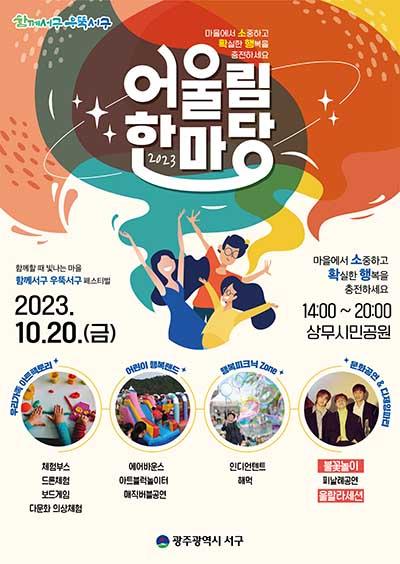 29만 서구민이 마을 공동체 안에서 소통하고 화합하는 축제의 장이 펼쳐진다. 광주시 서구는 오는 20일 상무시민공원 일원에서 ‘2023 어울림한마당’을 개최한다고 밝혔다.