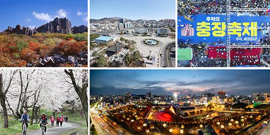 (왼쪽부터)무등산, 5·18민주광장, 충장축제, 국립아시아문화전당, 너릿재 벚꽃길. /광주시 동구 제공