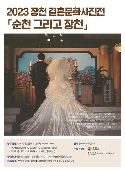 특히 순천시민을 대상으로 결혼문화 자료를 수집해 지역민이 만들고 기록한 사진전으로 그 의미를 더했다. 해당 프로그램에 대한 자세한 사항은 순천시 도시재생지원센터 누리집과 사회관계망서비스(SNS)를 확인하거나 장천현장지원센터(061-749-0346)로 문의하면 안내받을 수 있다.