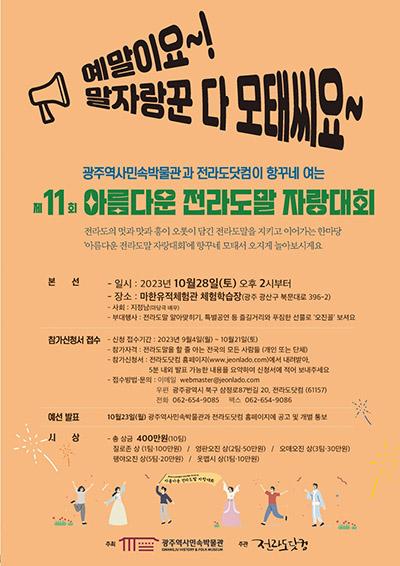 광주역사민속박물관과 월간 전라도닷컴은 오는 28일 오후 2시부터 신창동 마한유적체험관에서 ‘제11회 아름다운 전라도말 자랑대회’를 연다.