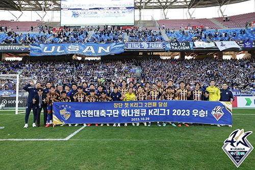 프로축구 K리그1 울산 현대가 대구FC를 잡고 2023시즌 조기 우승을 확정, 창단 최초 2연패를 달성했다.