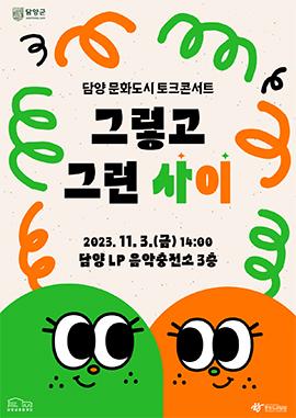 (재)담양군문화재단은 담양 문화도시 토크콘서트 ‘그렇고 그런 사이’를 오는 11월 3일 오후 2시 담양LP음악충전소에서 개최한다고 밝혔다.