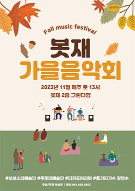 ‘봇재에서 만나는 가을 음악회’는 11월 매주 토요일(4일, 11일, 18일, 25일) 13시부터 2시간 동안 봇재 2층 그린다향 카페에서 만나볼 수 있다.