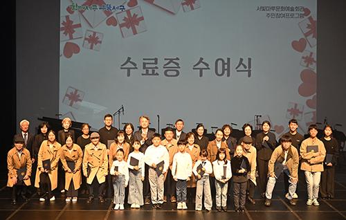 서구는 뮤지컬과 오케스트라에 관심 있는 주민들을 대상으로 지난 8월부터 12주간 ‘문화예술누리터’ 프로그램을 진행했다. 뮤지컬과 오케스트라 과정에 각각 20명이 참여해 이론교육, 보컬트레이닝, 춤·연기 연습, 악기합주 연습 등을 진행했다.