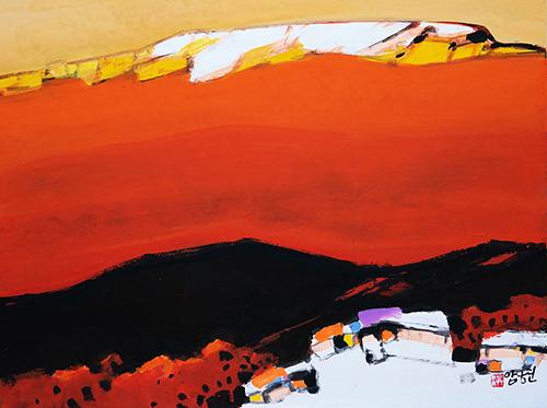 홍 작가는 “백두대간은 어느 대간의 특정 지역이나 일정 부분을 설명하듯 표현하기보다는 관념적 주관적 사의적으로 대간에 내재된 자연경을 함축시켜 산의 이미지를 재해석하고 구성했다”며 “채묵 톤의 파장길이를 적절히 대비시켜 화면의 긴장감과 가시적 조형적 경쾌함을 극명하게 표현하는데 열중했다”고 소개했다.