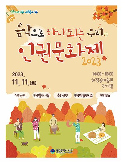‘음악으로 하나 되는 우리’라는 주제로 진행되는‘함께서구 인권문화제’는 광주인권헌장 낭독, 전남대 중앙 스트릿댄스 동아리 ‘LIT:CH’의 인권 플래시몹, ‘스마일통기타클럽’의 통기타와 밴드로 만나는 비틀즈 음악 등 다양한 문화행사가 진행된다.
