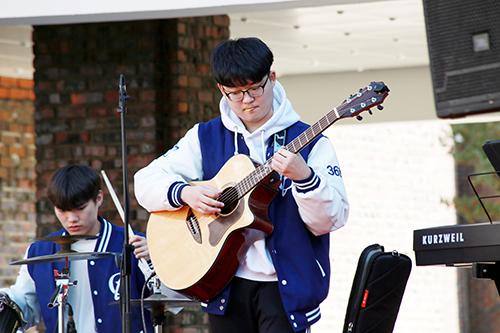 국립목포대학교 인문주간을 맞아 8일 도림캠퍼스 인문광장 특설무대에서 동아리‘옴니버스’가 감성 넘치는 밴드 공연을 펼치고 있다. 최근 목포대는 여가와 문화가 살아 숨쉬는 꿀잼(Jam) 캠퍼스 만들기와 문화예술 중심대학이라는 비전을 선포하고 활발한 문화예술 공연 활동을 펼치고 있다. /국립목포대 제공