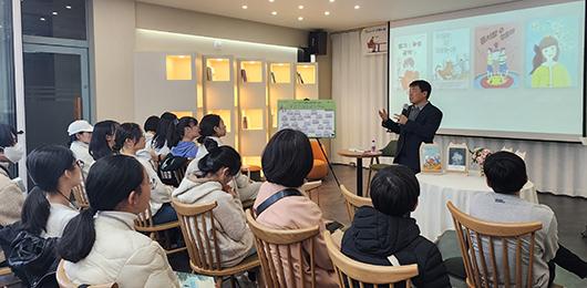 11일 동천동 행정복지센터 북카페에서 진행된 특강에서 문경민 작가는 ‘더 나은 세상을 향해’라는 주제로 입양 가정에 관한 이야기를 담은 책 「훌훌」을 소개했다. 또 문 작가는 소설가가 되기까지의 과정, 창작활동 등 자신의 이야기를 통해 청소년들과 소통의 시간을 가졌다.