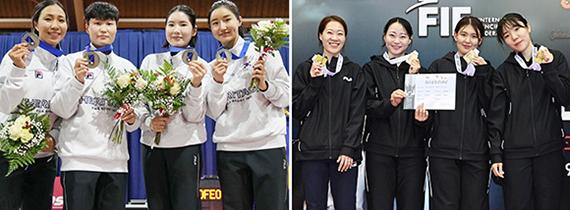 이어서, 에뻬에서는 이탈리아 레냐노에서 열린 여자 에페 월드컵에서 유단우(전남도청), 강영미(광주서구청), 송세라(부산광역시청), 이혜인(강원특별자치도)이 팀을 이뤄 16강에서 이집트(세계15위)에 45:29로 승, 8강전에서 중국(세계6위)에 45:39로 승, 준결승에서 폴란드(세계4위)를 39:35로 꺾으며 결승에 진출했다.