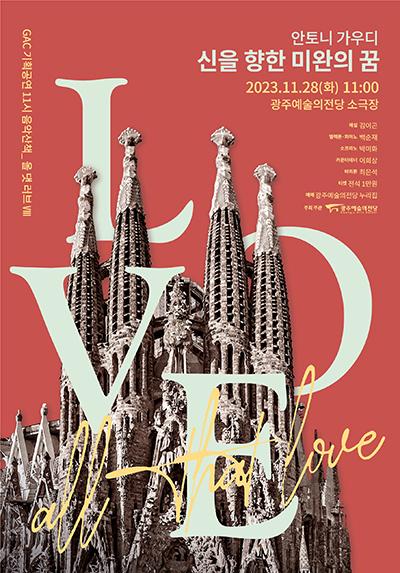 광주예술의전당 기획공연 11시 음악산책 ‘올 댓 러브’ 여덟 번째 이야기는 ‘안토니 가우디, 신을 향한 미완의 꿈’이다.