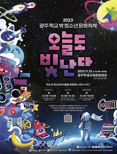 광주시 광주시학교밖청소년지원센터와 함께 23일 광주학생교육문화회관에서 ‘2023년 학교밖 청소년문화축제-오늘도 빛난다’를 개최한다.