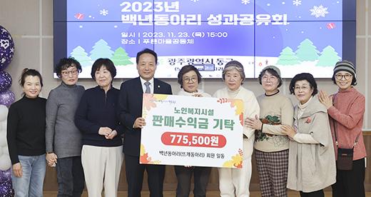 광주 동구는 23일 산수동 푸른마을공동체센터에서 어르신들이 올 한해 동아리 활동을 통해 느낀 소회와 결과를 발표·공유하는 ‘2023년 백년 동아리 성과공유회’를 개최했다고 밝혔다.