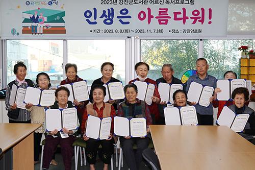 강진군도서관은 지난 21일, 강진양로원 어르신을 대상으로 진행했던 ‘인생은 아름다워!’ 프로그램 수료식을 가졌다.