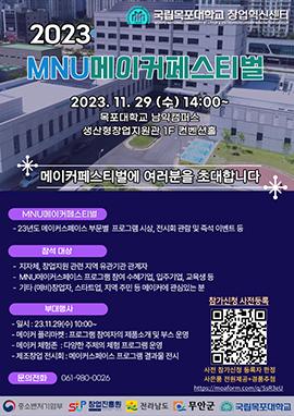 \'2023 MNU메이커페스티벌’은 지역의 유망 아이디어를 발굴해 다양한 창조혁신(메이커) 교육, 지도상담(멘토링), 시제품 제작 지원, 체험 프로그램 등을 통해 제작된 작품들을 전시·공유하는 축제다.