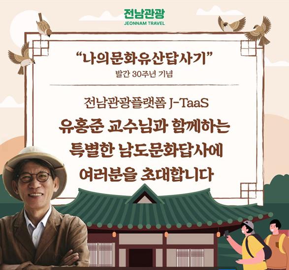 전남도가 ‘전남방문의 해’를 맞아 유홍준(전 문화재청장) 교수의 ‘나의 문화유산 답사기’ 발간 30주년 기념 전남관광플랫폼 이벤트 ‘남도문화유산답사 1박2일’을 12월 9~10일 강진·해남·영암 등에서 개최한다.