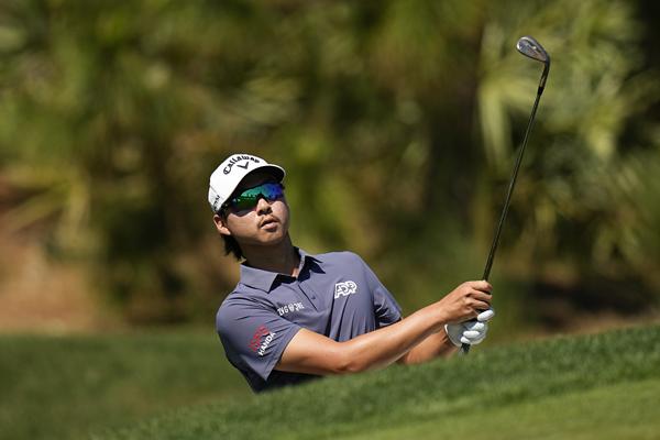 이민우(호주)가 11일(현지시간) 미 플로리다주 폰테베드라비치의 TPC 소그래스 스타디움 코스에서 열린 미국 프로골프(PGA) 투어 플레이어스 챔피언십 3라운드 2번 그린에서 칩샷하고 있다. 이민우는 중간 합계 12언더파 204타로 단독 2위를 기록했다. 2023.03.12.