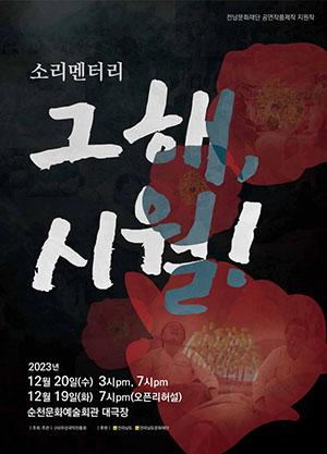 한편 \'그해, 시월\' 공연은 전남문화재단 후원으로 12월 19일 오후 7시(오픈리허설)와 20일 오후 3시와 7시, 순천 문화예술회관 대극장에서 열린다. 관람료는 무료이며 공연 관람권 소지자나 사전 온라인 예약자에 한해 입장할 수 있다. /순천=조순익 기자
